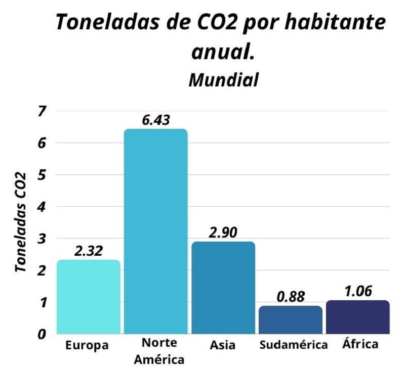 • África, apenas alcanza 1 tonelada anual por habitante.