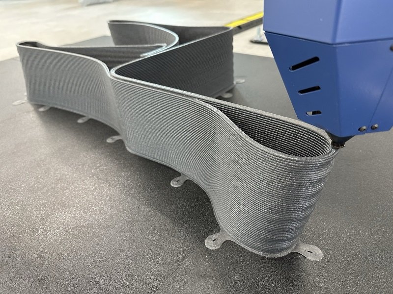 Y es que la posibilidad de fabricar piezas de más de un metro cúbico sin ensamblajes abre nuevas oportunidades en sectores como la automoción, el urbanismo o el diseño de interiores. Así, AIMPLAS ha desarrollado varios demostradores funcionales que evidencian el potencial de los nuevos materiales y tecnologías aplicadas. En colaboración con la empresa Plàstic Preciós La Safor, se han fabricado piezas para bancos de mobiliario urbano, donde las patas, impresas en 3D de gran formato, se complementan con baldas recicladas elaboradas por la propia empresa a partir de residuos plásticos. En el ámbito del diseño de interiores, se ha desarrollado una mesa con un tablero fabricado por Plàstic Preciós y un pie de una sola pieza, de geometría esbelta y más de un metro de altura, producido mediante fabricación aditiva a gran escala. Además, AIMPLAS ha diseñado y fabricado de forma autónoma un alerón de automoción, demostrando la viabilidad del uso de estos materiales en aplicaciones exigentes.