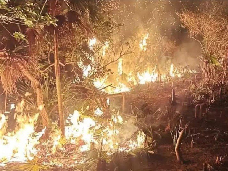 El incendio —que se presume fue provocado— arrasó con 670 hectáreas de selva en el Área